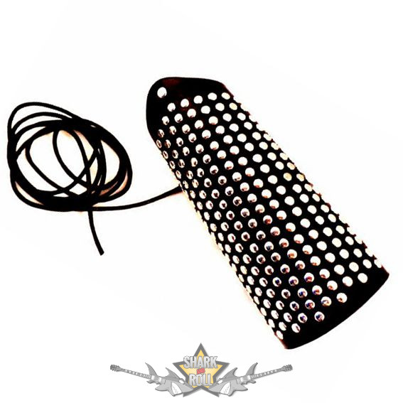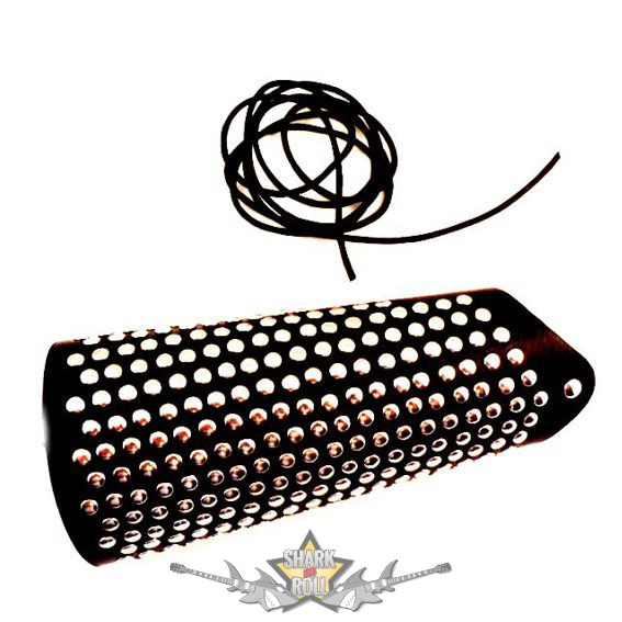 Fekete, csuklópánt,alkarvédő, egyik oldalán bőr fűzővel.