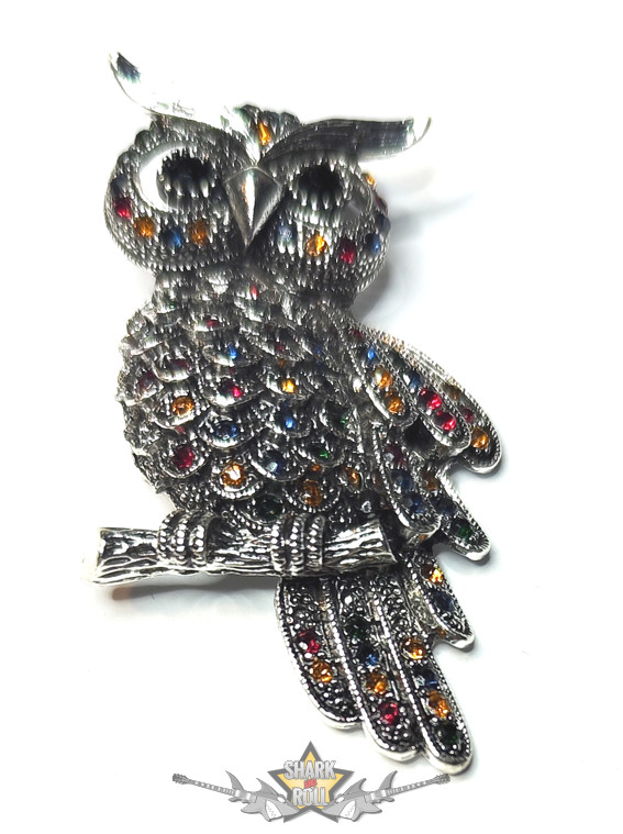 Csillogó Bagoly Bross – Színes Kristályos Vintage Bagoly. bross, kitűző.