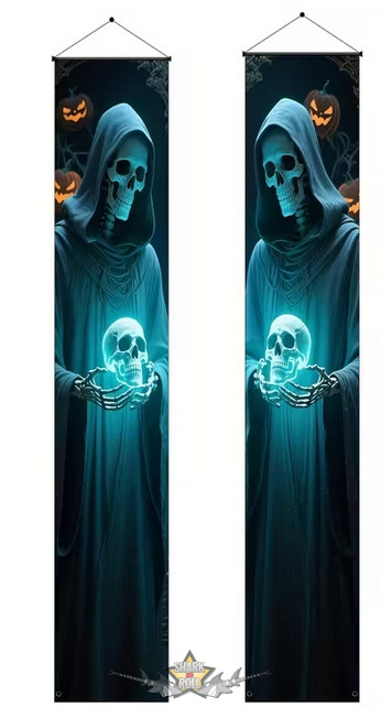 Függő Zászlók Csontvázos Kapucnis Alakokkal.   zászló