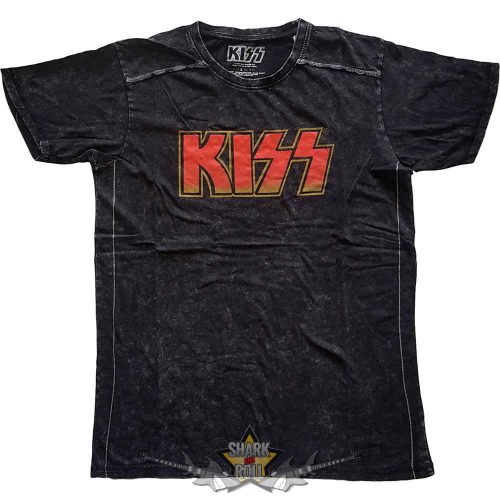KISS - Unisex T-Shirt.  Classic Logo (Black) (Wash Collection)  férfi zenekaros póló