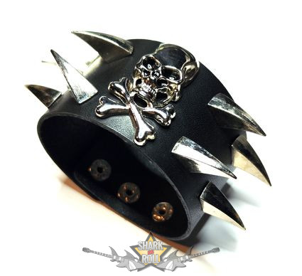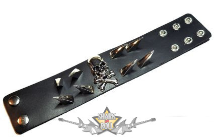 Koponyás karkötő fémdíszekkel. 4 karom szegecs.. JVPT. karkötő, csuklópánt.