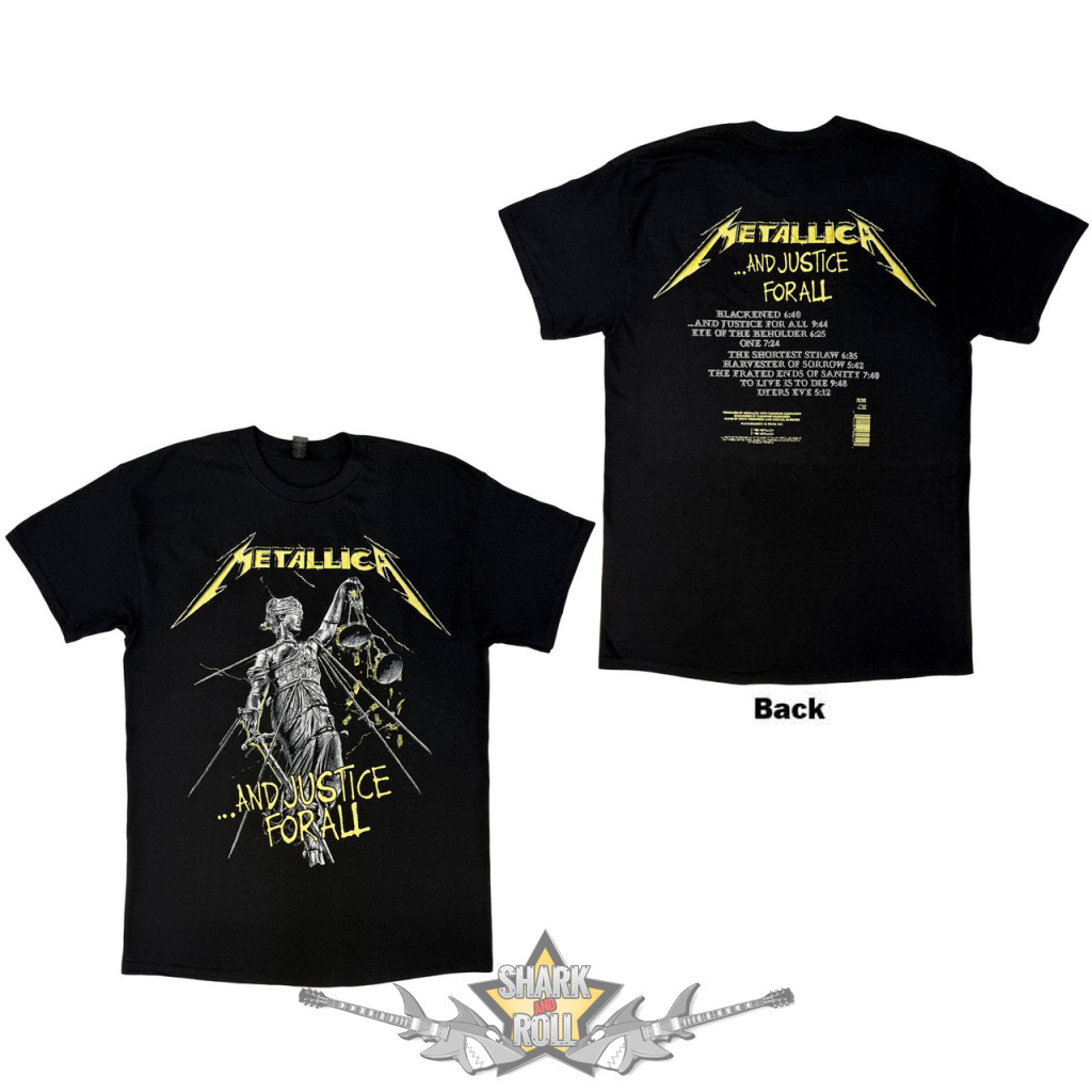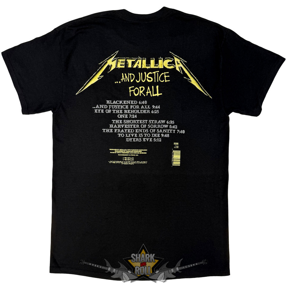 Metallica - Unisex T-Shirt. And Justice For All Tracks (Black) (Back Print). férfi zenekaros póló